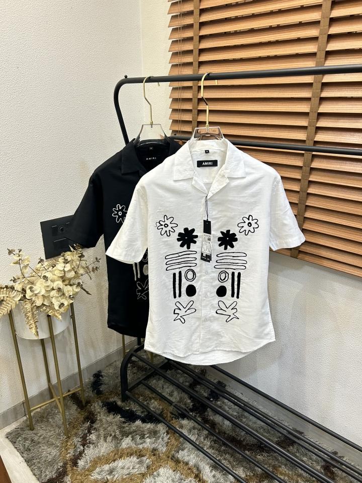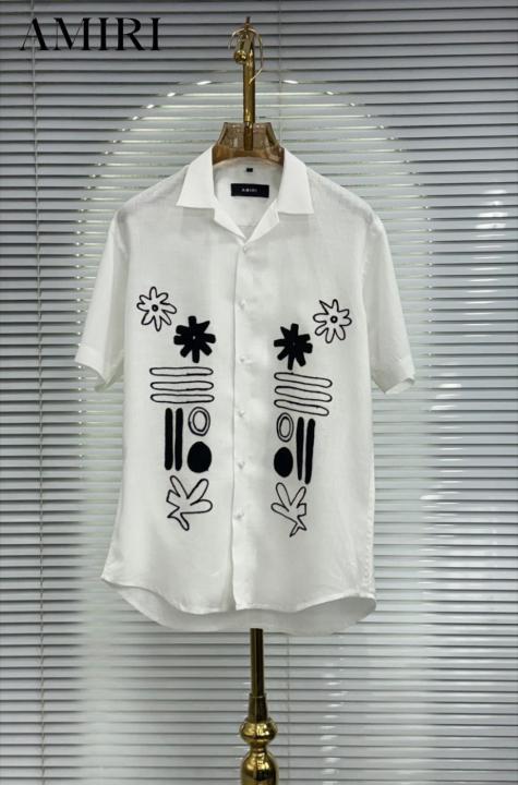 • Amir_i Thread Embroidered Exclusive Linen Half Shirt (DN 632)