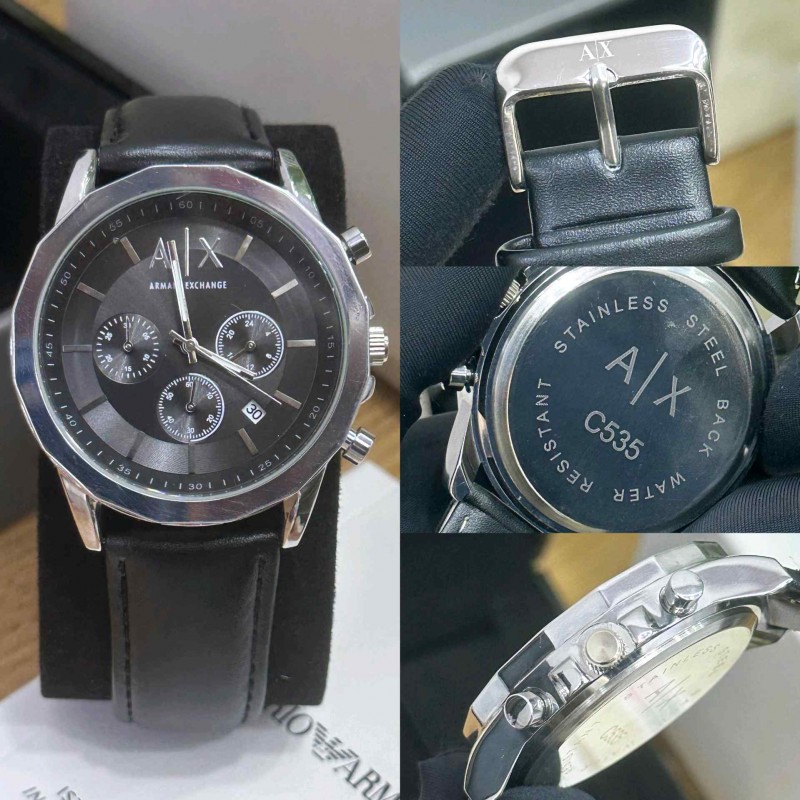 • armani_exchange steel black leather belt