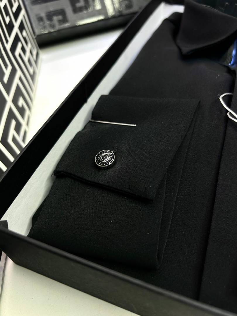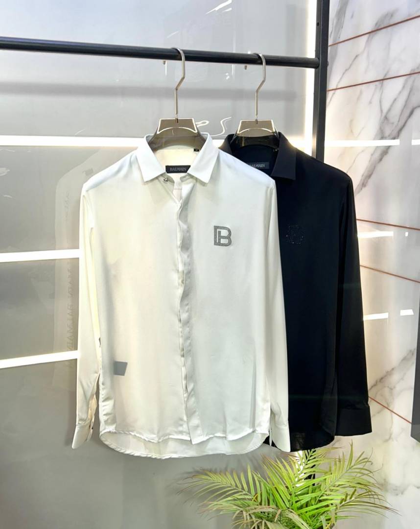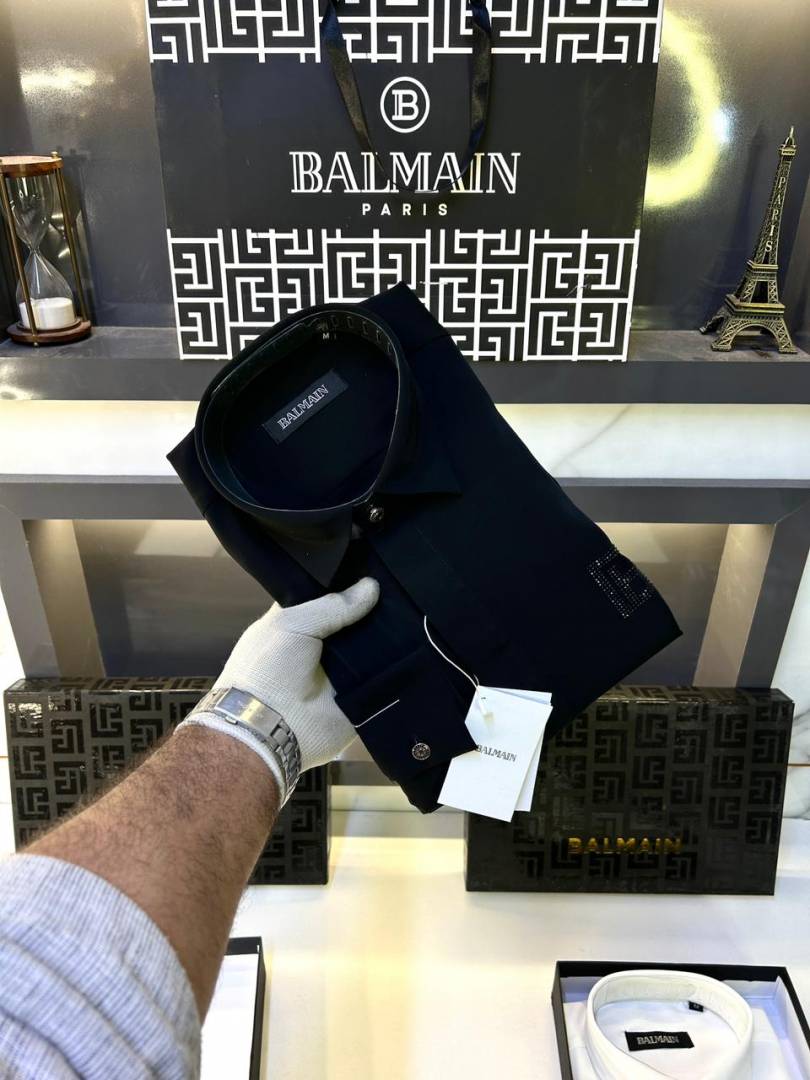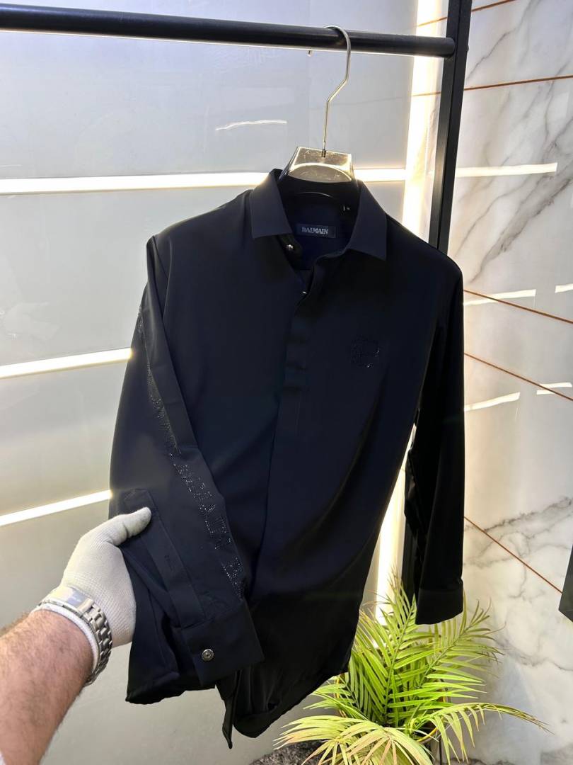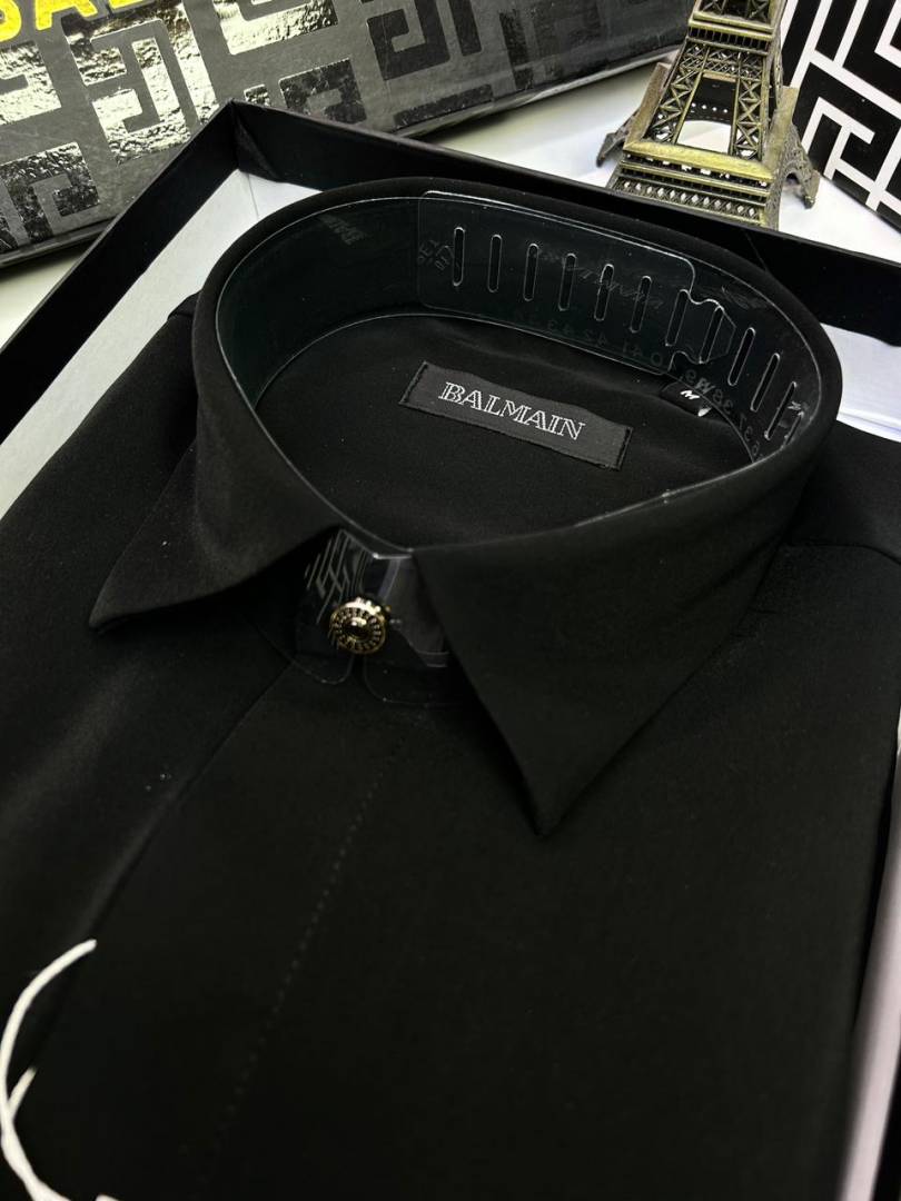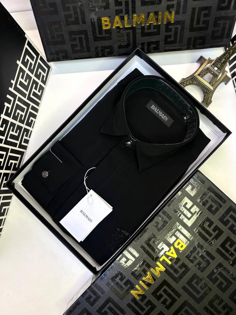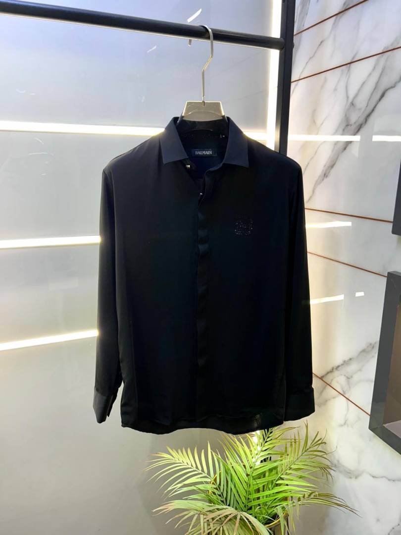 Balmai n Paris Logo Black Premium Shirt With Brand Box Packing And Carry Bag F3076-BL