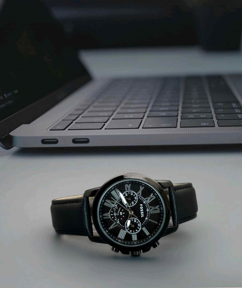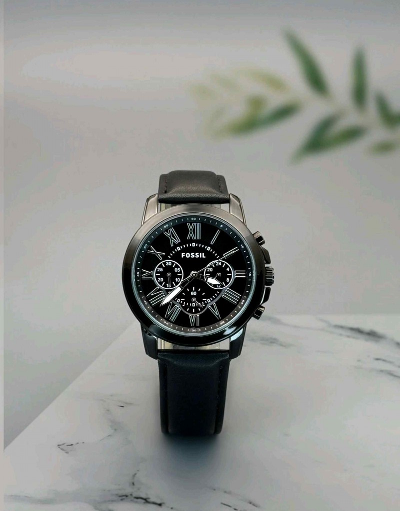 • FOSSIL_ GRANT ALL BLACK SILVER FONT