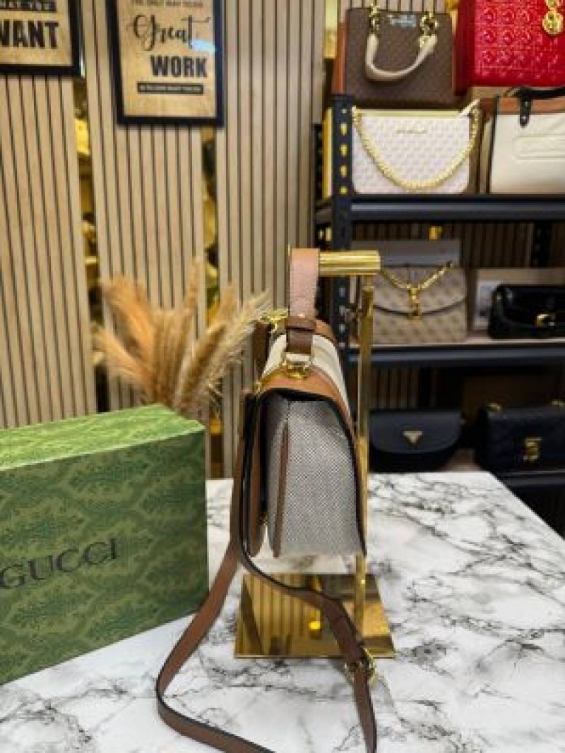 Gucc_i Blondie Top Handle Bag With Box (White Brown-6189)