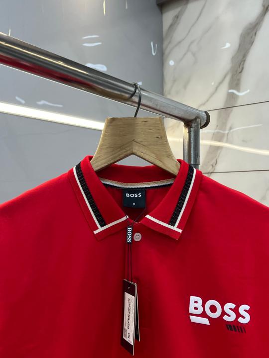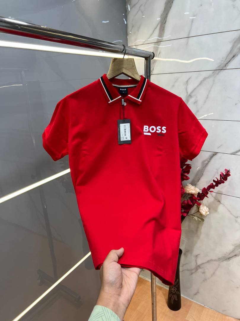 Hugo Bos s Premium Imported 240 GSM Interlock Lycra Fabric Polo Tshirt with Collar Design and Emboss Logo 3997
