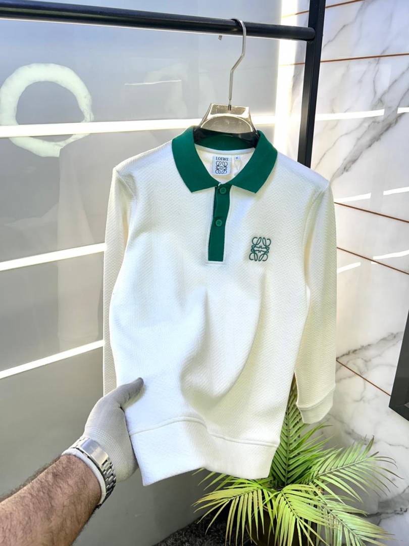 Loewe White Knitted Imported Premium Collar Sweatshirts F3359-WH