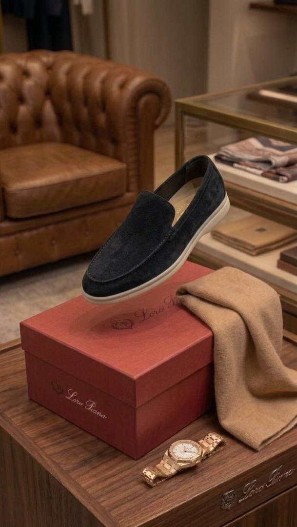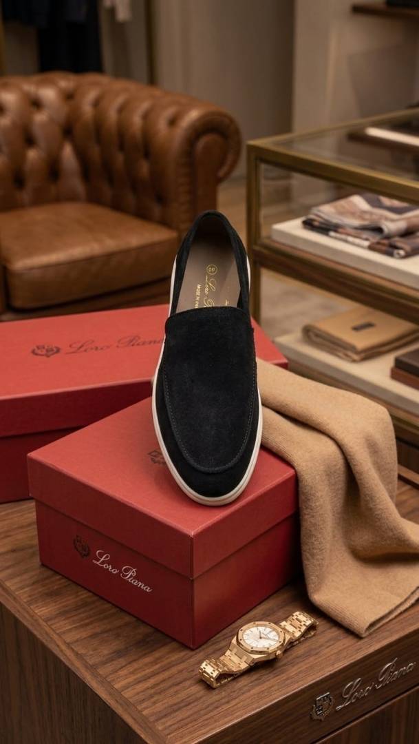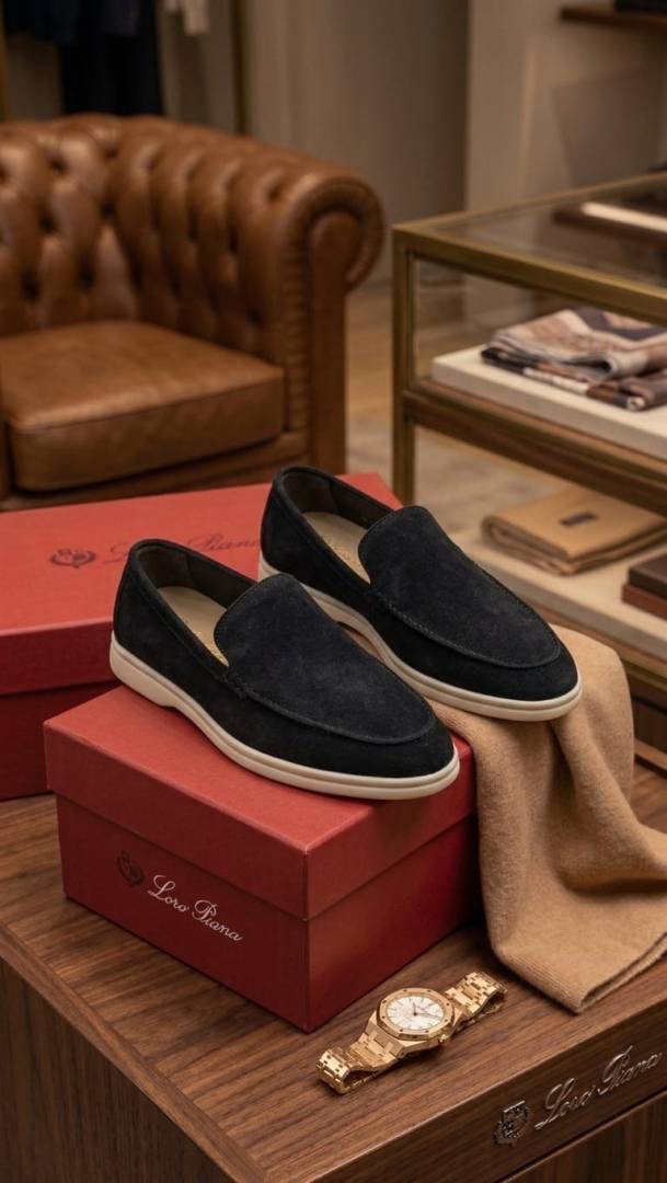 LORO PIANA SUMMER WALKS LOAFER SUEDE BLACK 100
