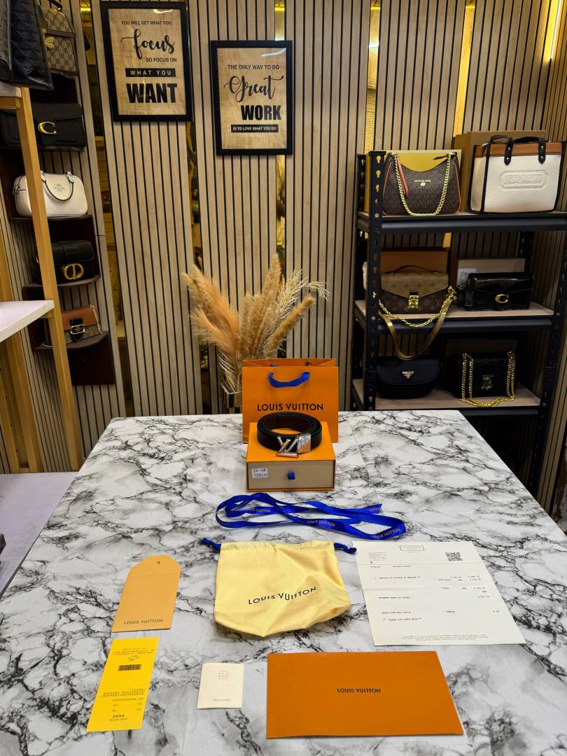 Louis_Vuitton Black Leather Belt With LV Initiales Buckle Includes Box and Carry Bag (24-1)