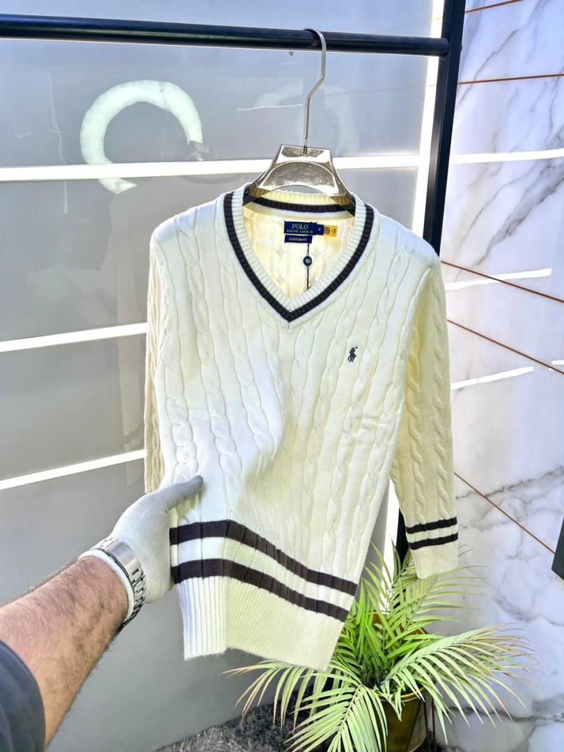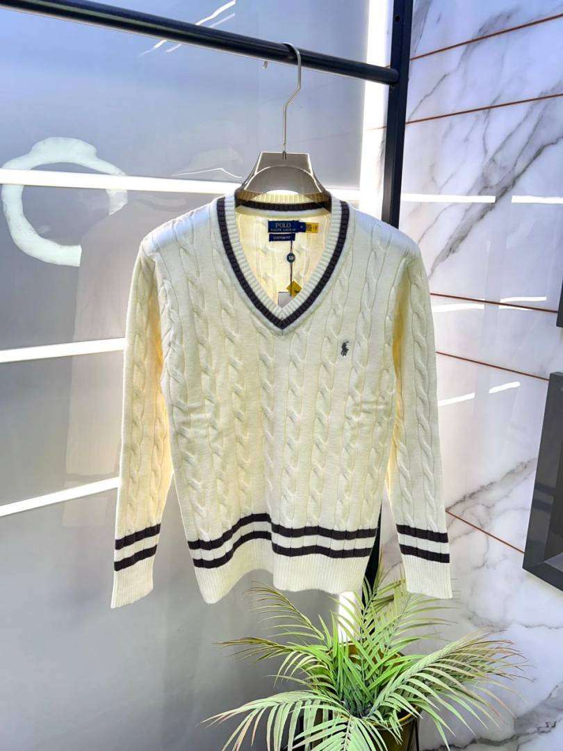 Ralph_Lauren Off-white Imported knitted V Neck Super Premium Pullovers F3246-OF